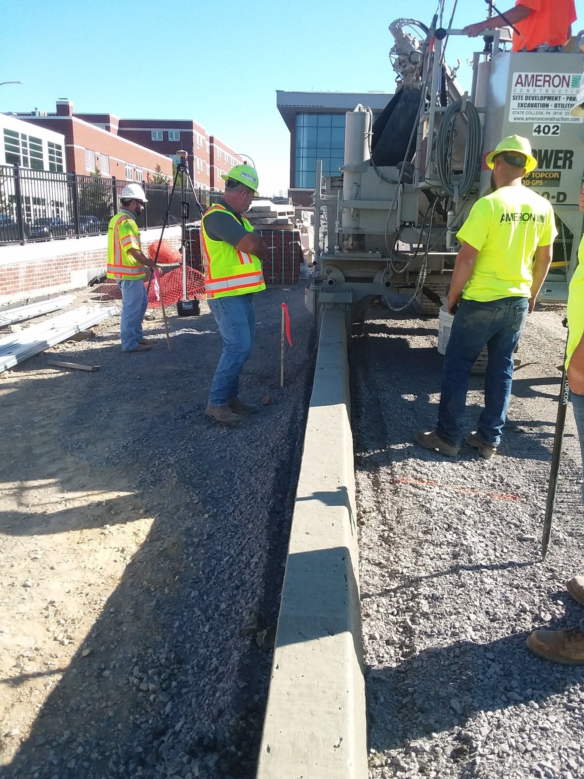 Ameron’s special equipment to install both extruded base mounted curb and full PDOT curb in many profiles is complement by our site flatwork capabilities. Specialty walls, trench drains and decorative exposed aggregate surface can all be included in your projects scope and all covered under Ameron’s concrete capabilities.